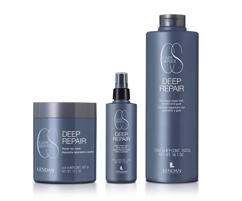 Lendan Deep Repair Champú Reparador con Queratina y Guar 1000ml + Mascarilla Reparadora 500ml + Spray Reparador Finish 200ml   CHAMPÚ REPARADOR CAPILAR CARE SERIES 1000ml Cabellos más sanos con el tratamiento reestructurante para cabello desvitalizado de Care Series. El champú Deep Repair es un reparador capilar que actúa en sinergia con la estructura del cabello, aportándole estructura, cuerpo, brillo y sedosidad.