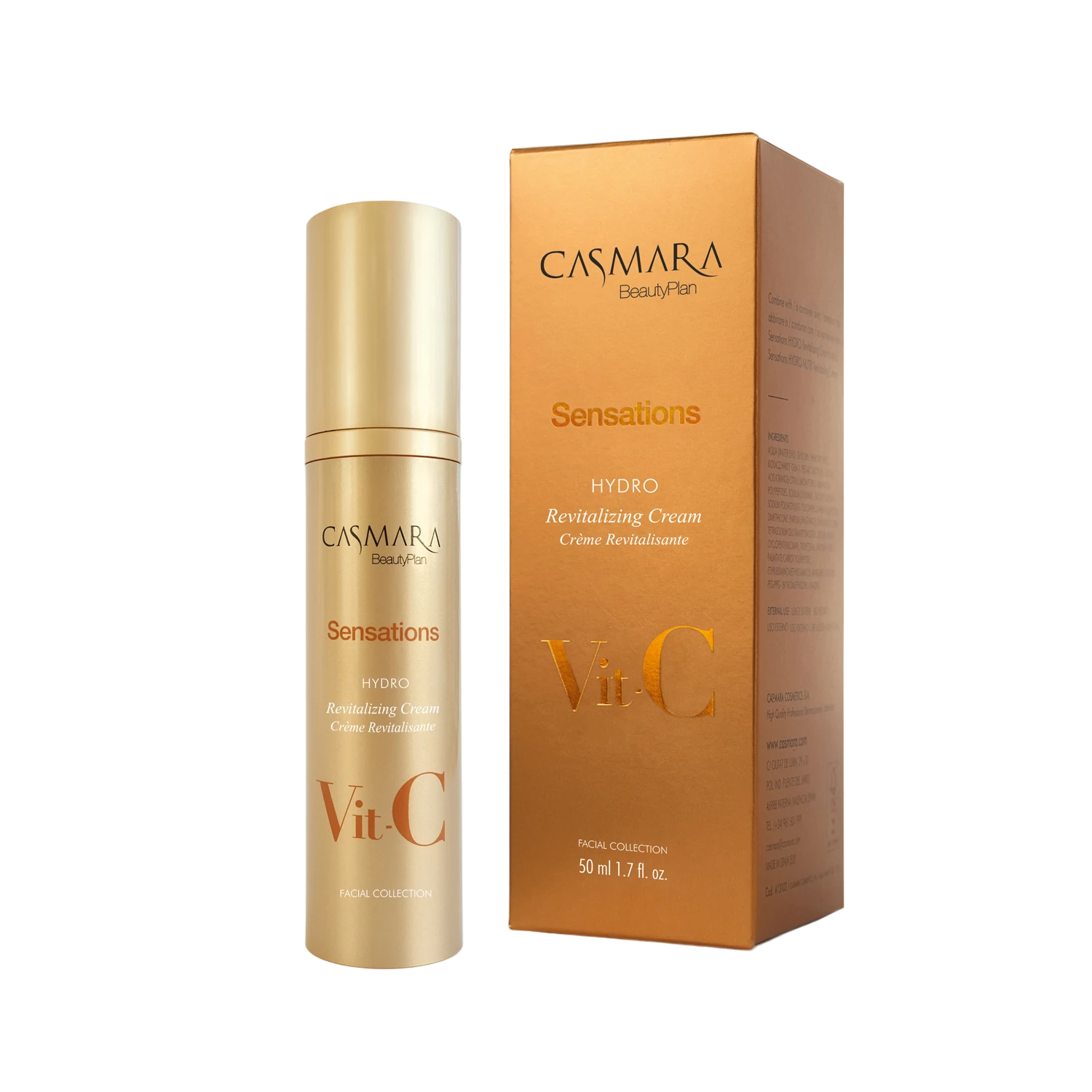 Crema hidratante facial con vitamina C – revitalizante, en una textura única que fusiona la riqueza de la crema y la frescura de un gel; formulada a base de vitaminas (A+C+E) biodisponibles de alta penetración potenciado con oligoelementos, minerales y sublime aceite de camelia.